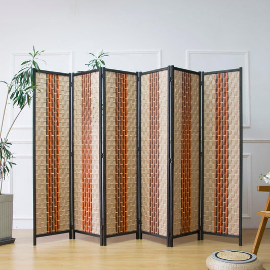 Furnnylane 6 Panel Room Divider and Folding Screen Room Divider, Bamboo Room Divider for Room Separation,67" H x 92.1" W