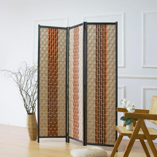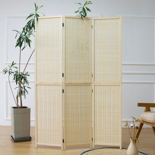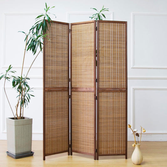 Furnnylane 3 Panel Room Divider and Folding Screen Room Divider,Bamboo Room Divider Screen for Room Separation,67" H x 46" W