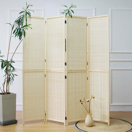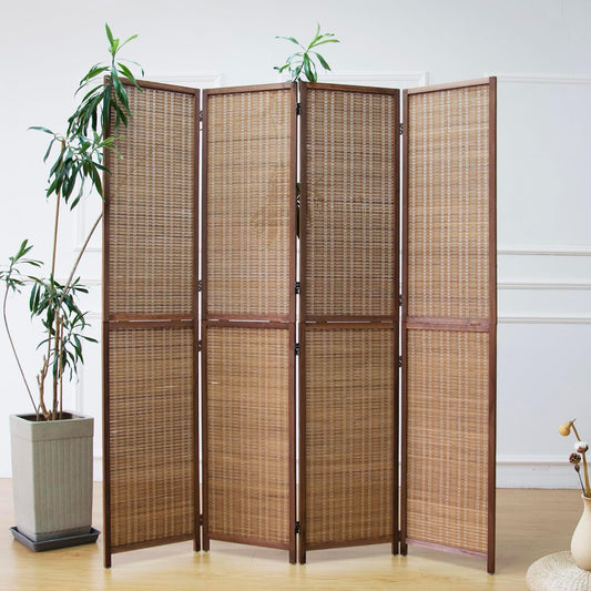 Furnnylane 4 Panel Room Divider and Folding Screen Room Divider,Bamboo Room Divider Screen for Room Separation,67" H x 61.4" W